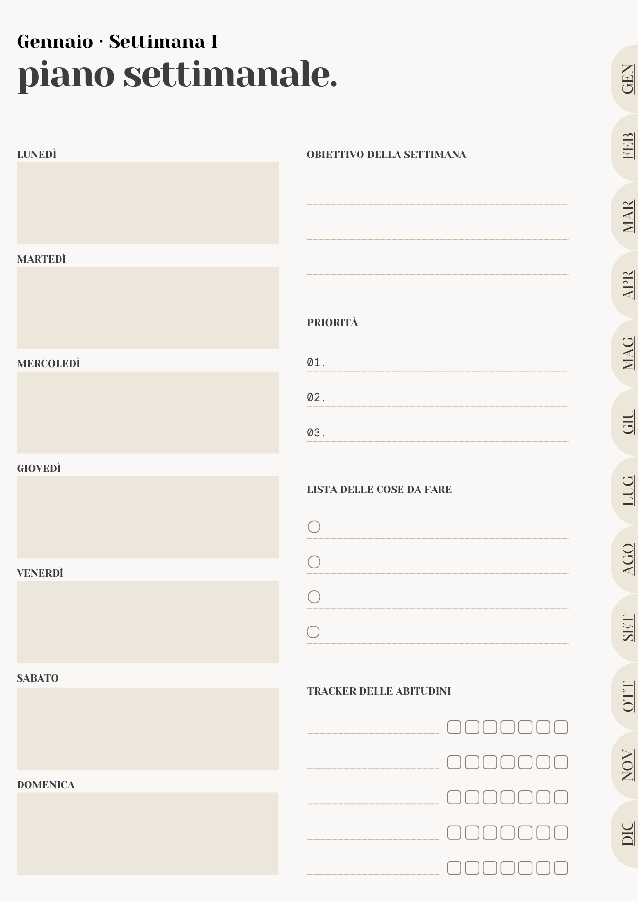 Calendari mensili e planner settimanali ti aiutano a mantenere ordine e priorità.