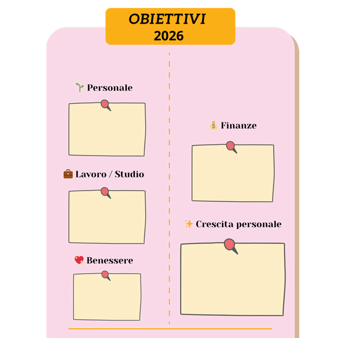 Il planner ti guida a definire obiettivi e intenzioni per il nuovo anno, senza pressione.